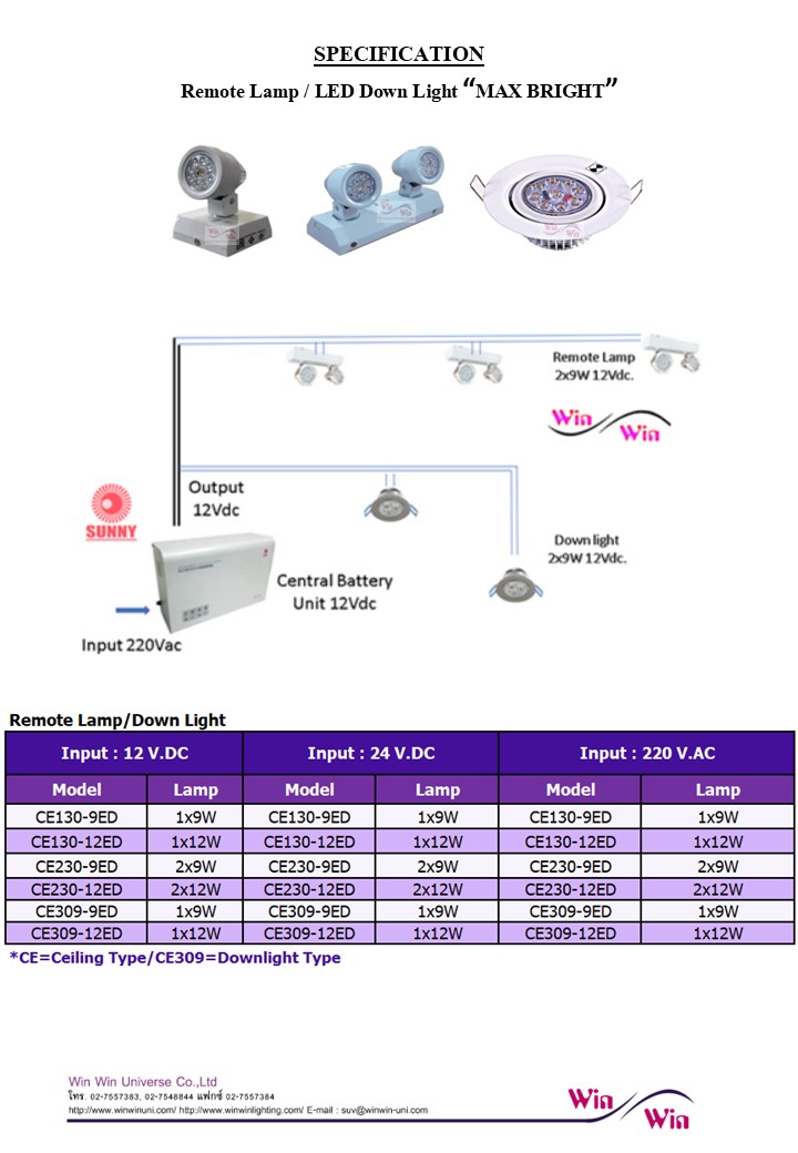 โคมไฟ Downlight/Remote Lamp 1หัวโคมหรือ2หัวโคม ที่สามารถใช้งานได้กับระบบไฟ 12V,24V,220V ใช้งานร่วมกันกับ Central Unit Emergency Light -