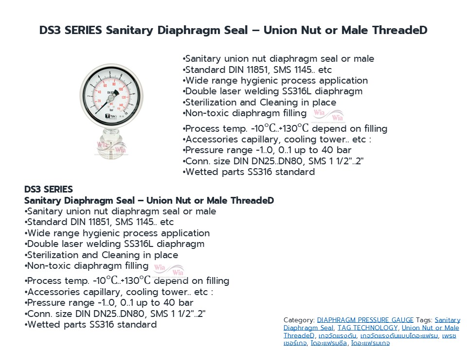 DS1 SERIES : Direct Threaded DS3 SERIES Sanitary Diaphragm Seal