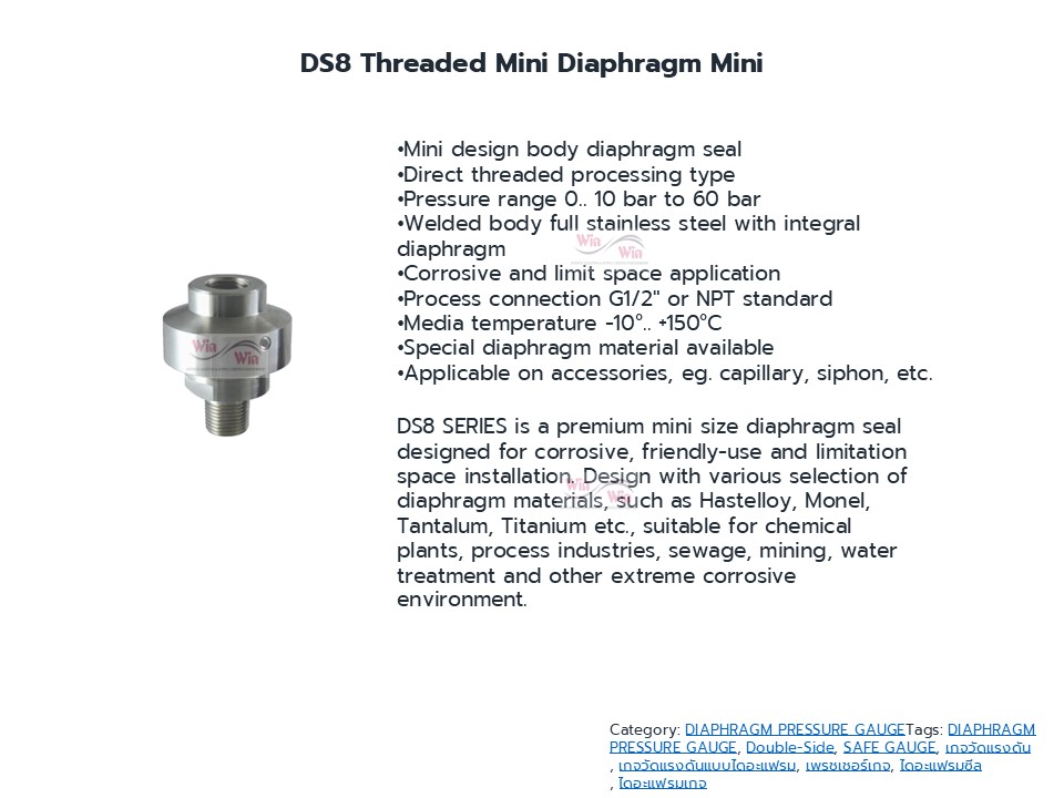 Chemical seal All welded Design, DS8 Threaded Mini Diaphragm Mini
